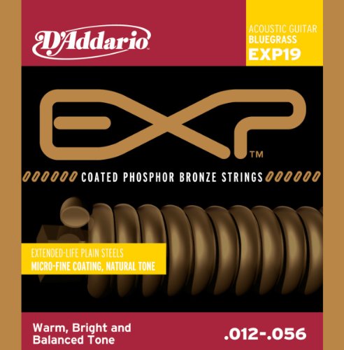 D'Addario EXP19 Coated Phosphor Bronze Acoustic Guitar Strings, Light Top/Medium Bottom/Bluegrass, 12-56 Review